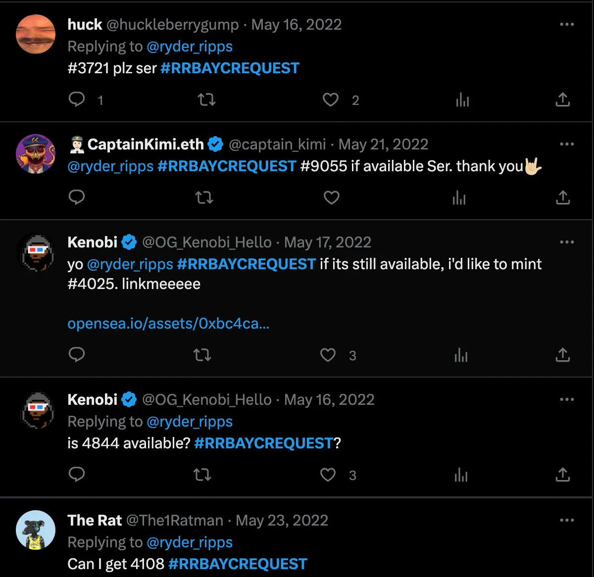 There were many people tweeting and asking to get their RR BAYC based on their chosen Bored Ape image.