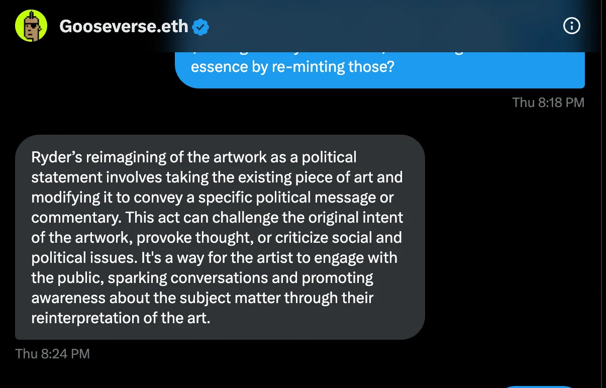 The conversation between them and the Twitter crowd provoked thoughts and brought up important topics such as NFTs, IP rights, ownership, provenance, etc.