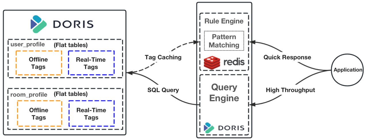 Instead of using Spark for queries, we parse the query rules into SQL for execution in Apache Doris. For pattern matching, we use Redis to cache the hot data from Apache Doris, so the system can respond to such queries much faster.
